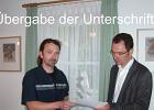 Andreas Kaiser übergibt dem Ortsvorsteher 116 Unterschriften (55% der Wahlberechtigten)